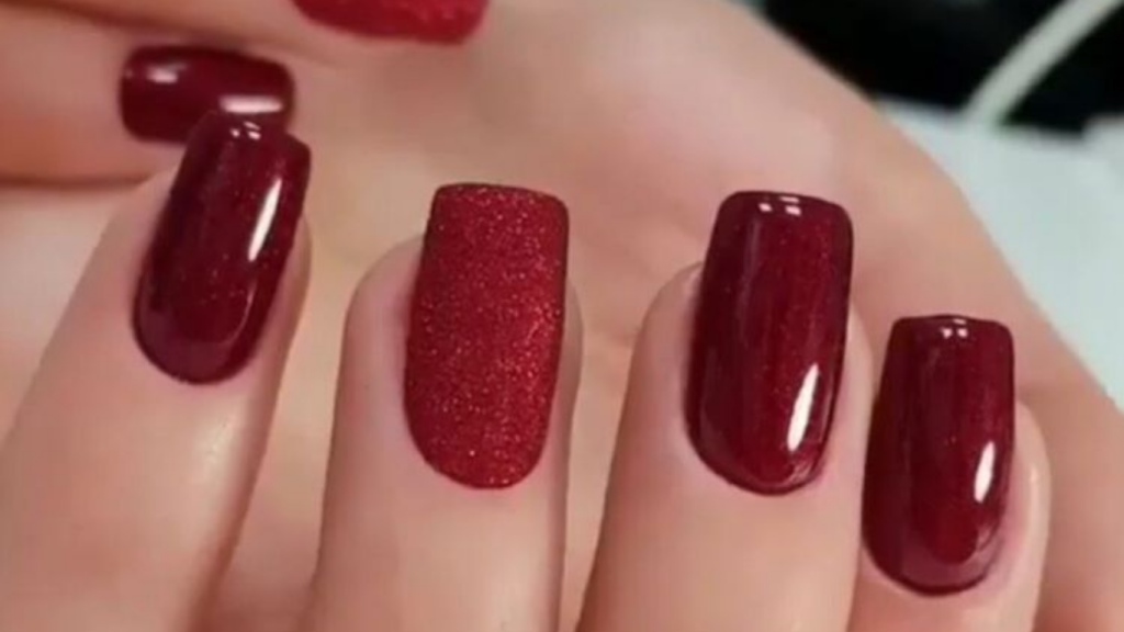 Quais são as melhores combinações com unhas vermelhas e glitter dourado?